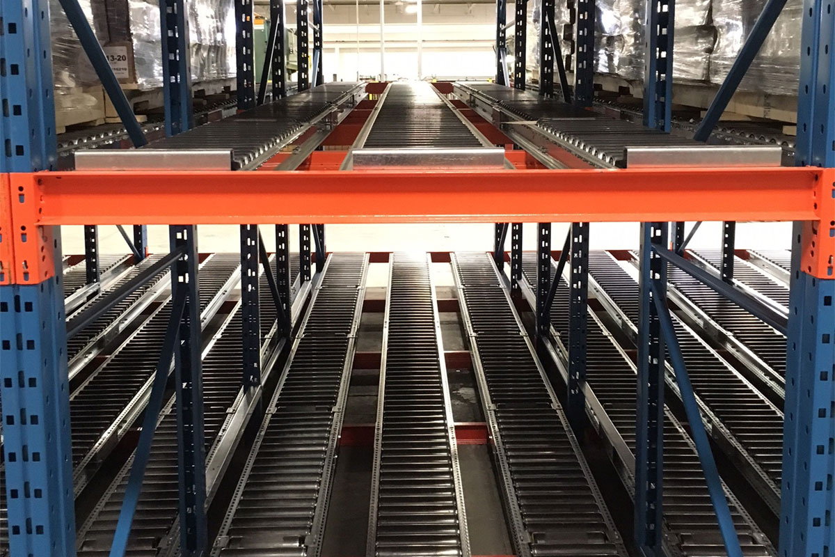 While generally more expensive than other flowrack systems, rollers typically provide the most flexibility for different pallet styles. The automotive industry is a large user of roller-based systems for these reasons. While rollers come in a multitude of sizes and styles, there are two types that are most commonly used: 1.9” diameter and 2.5” diameter. These can be provided with either a galvanized or unfinished surface.