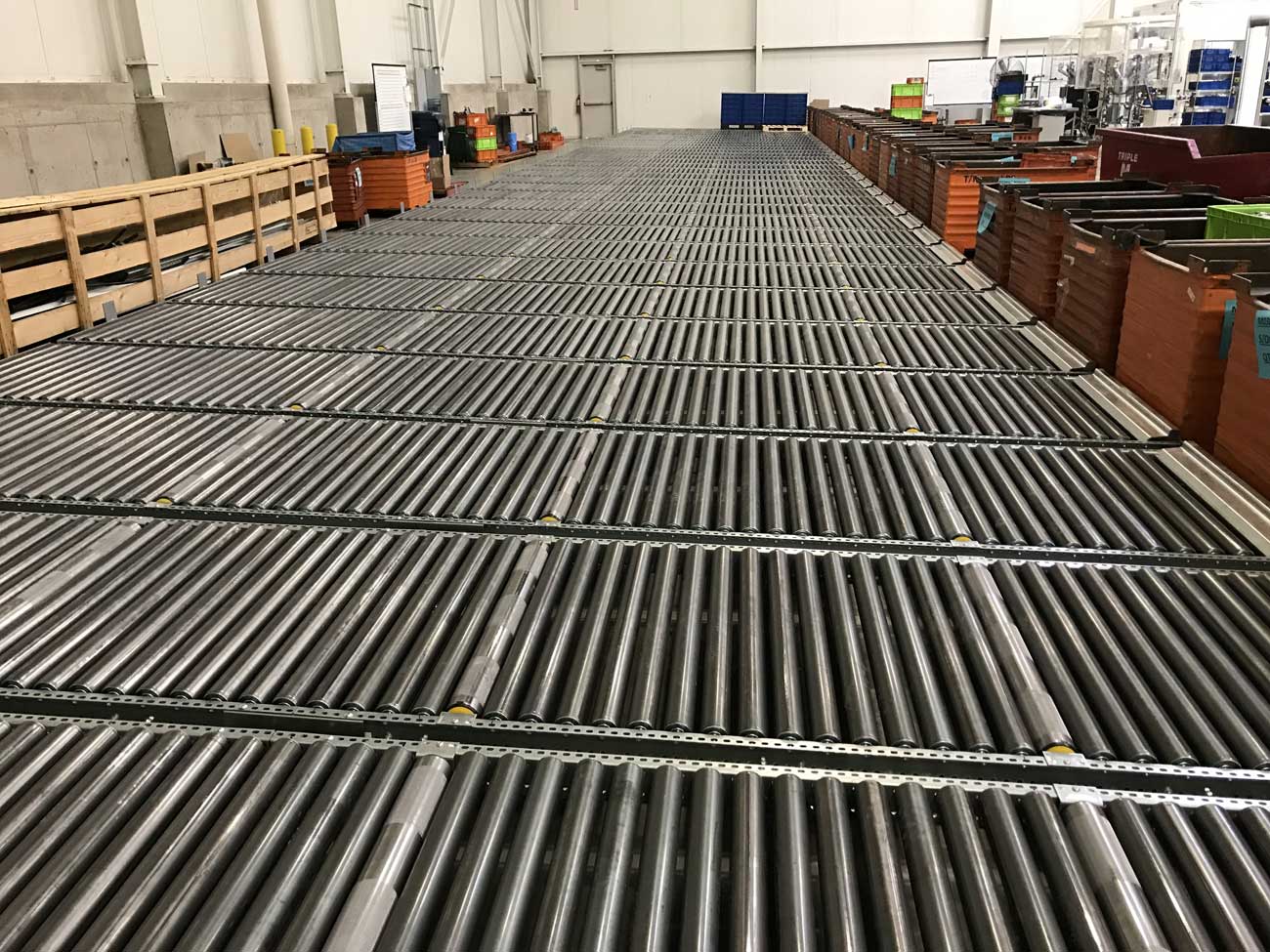 Strength and versatility with steel rollers for pallet flow
