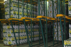 Typically pushback racking ranges between $100-$200 per pallet, but in some cases works out to less than that. In the photo below we see a very popular configuration showing floor storage with pushback up above. In this particular case the first pushback level is also double stacked pallets.