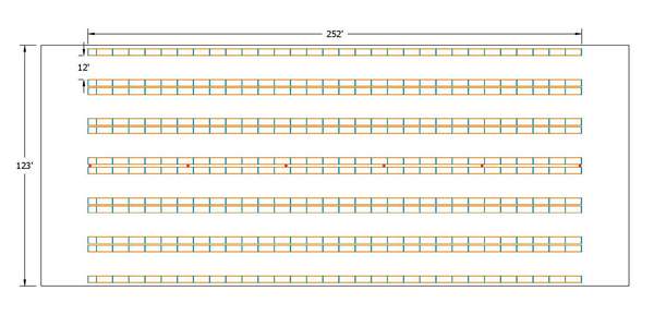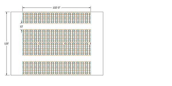 This layout works out cheaper than a similar drive-in layout (around $80 in this case) and yet provides more flexibility and faster load/unload cycles. Inventory analysis and building layout will help decide on a design that will be most cost effective. Contact 3D today to receive more detailed information.